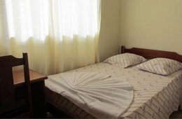 Este é nosso quarto mais procurado! Decorado em estilo padrão simples, com 1 cama de casal, ar-condicionado, ventilador, TV e frigobar, além de um banheiro privativo. A acomodação ainda oferece uma mesa de trabalho, um closet e lençóis/toalhas básicos. Café da manhã incluído!