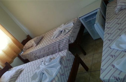 Acomodação de 15m², oferece 1 cama de casal e 1 solteiro ou 3 camas de solteiro (escolher no momento da reserva), ar-condicionado, ventilador, TV e frigobar, além de um banheiro privativo. Oferece ainda uma mesa de trabalho, um closet e lençóis/toalhas básicos. Por fim, uma bela vista da cidade e café da manhã incluído!